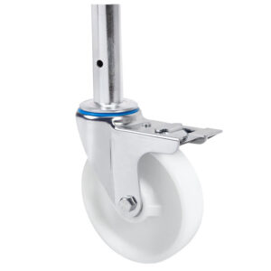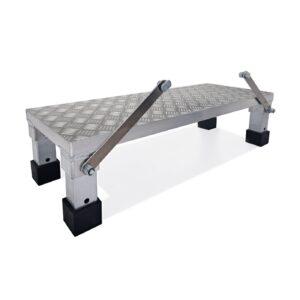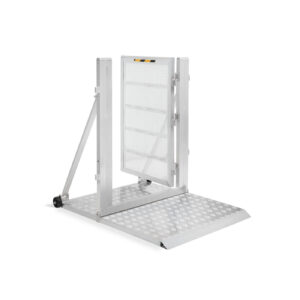 מחסום לחץ מקצועי מאלומיניום של GUIL כולל מדרגה וגלגלי נשיאה.