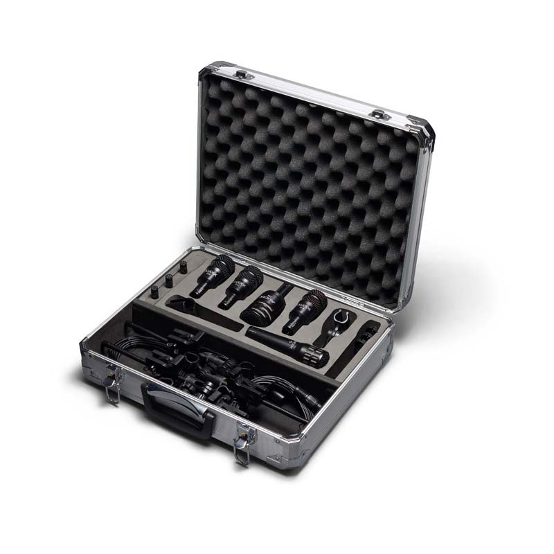 סט מיקרופונים של Audix הכולל 5 מיקרופונים מסדרת להגברת תופים.