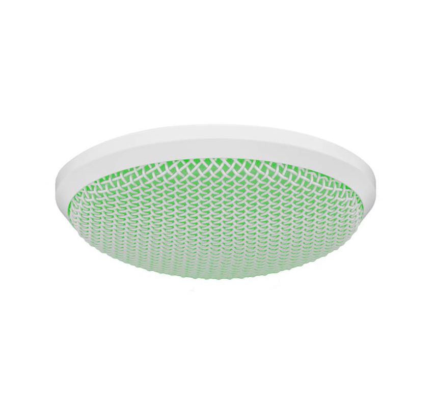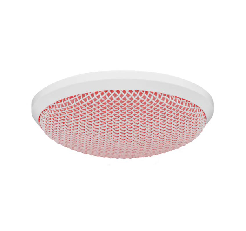 מיקרופון תקרתי עגול DANTE/AES67 של Audix להתקנות אודיו מקצועיות עם תגובת תדרים רחבה.