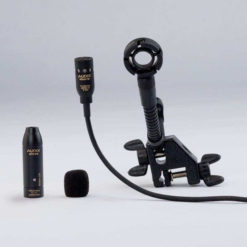 מיקרופון קונדנסר קומפקטי של Audix עם קליפס לכלי נגינה להופעות חיות והקלטות.