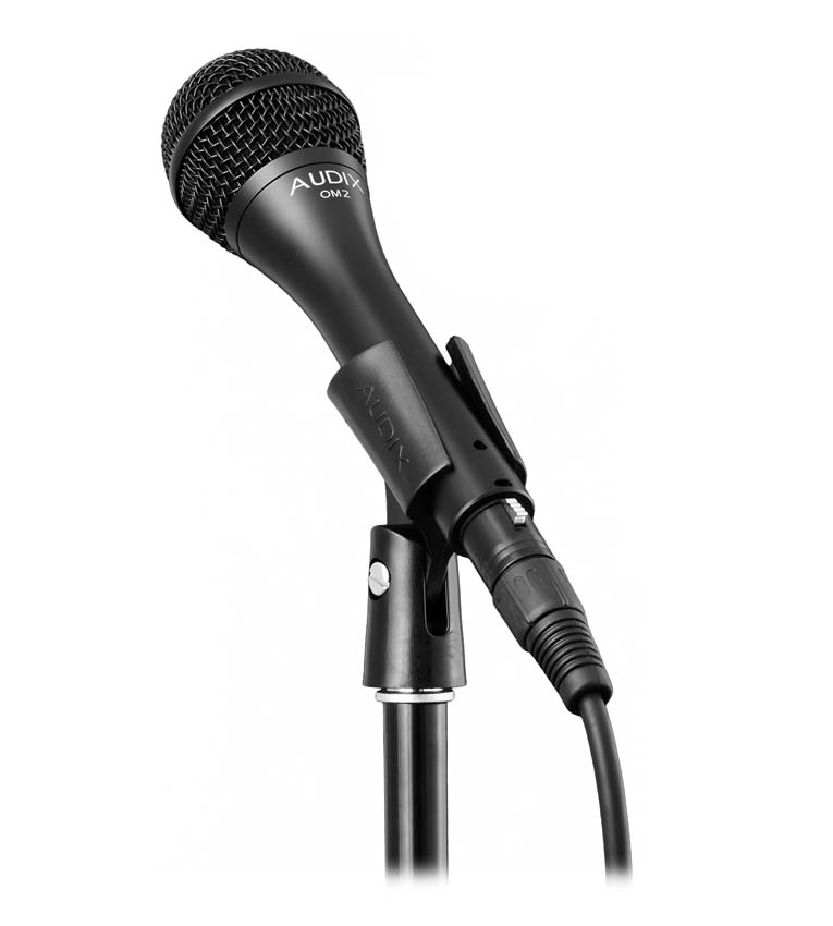 מיקרופון דינמי של Audix לשירה בהופעות חיות.