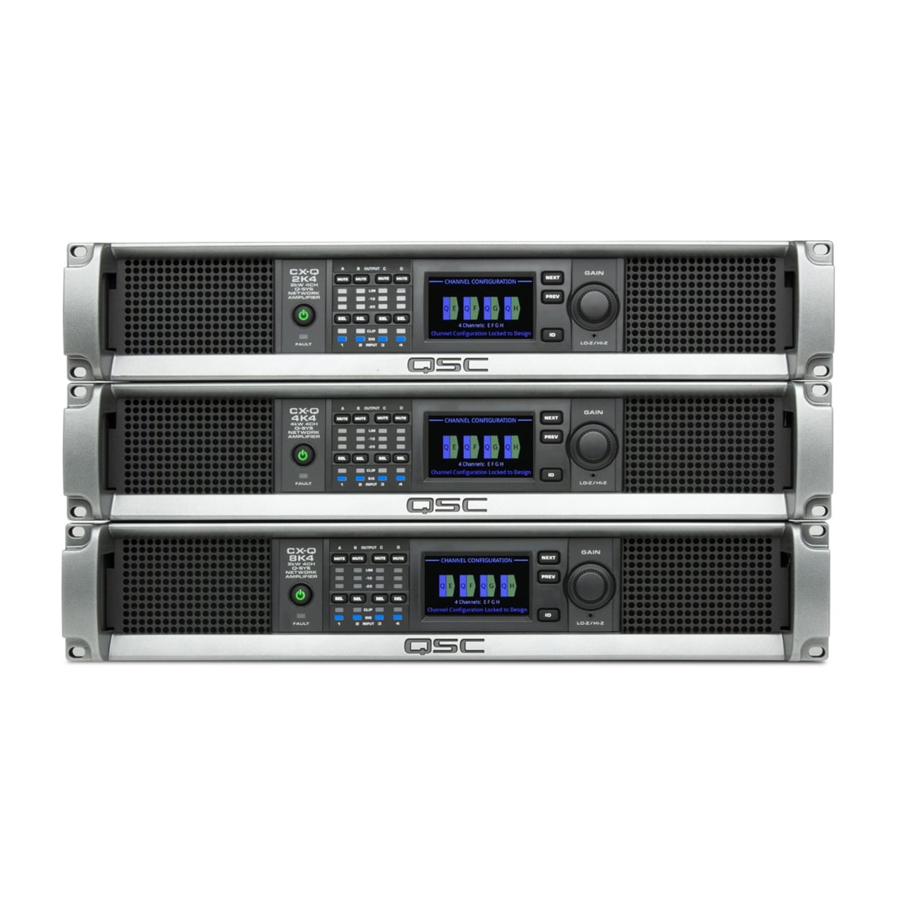 מגבר רשת בעל 8 ערוצים בהספק כולל של 8000 וואט, המכיל DSP מובנה, תומך בשנאי קו 70/100V ואינטגרציה ל-Q-SYS