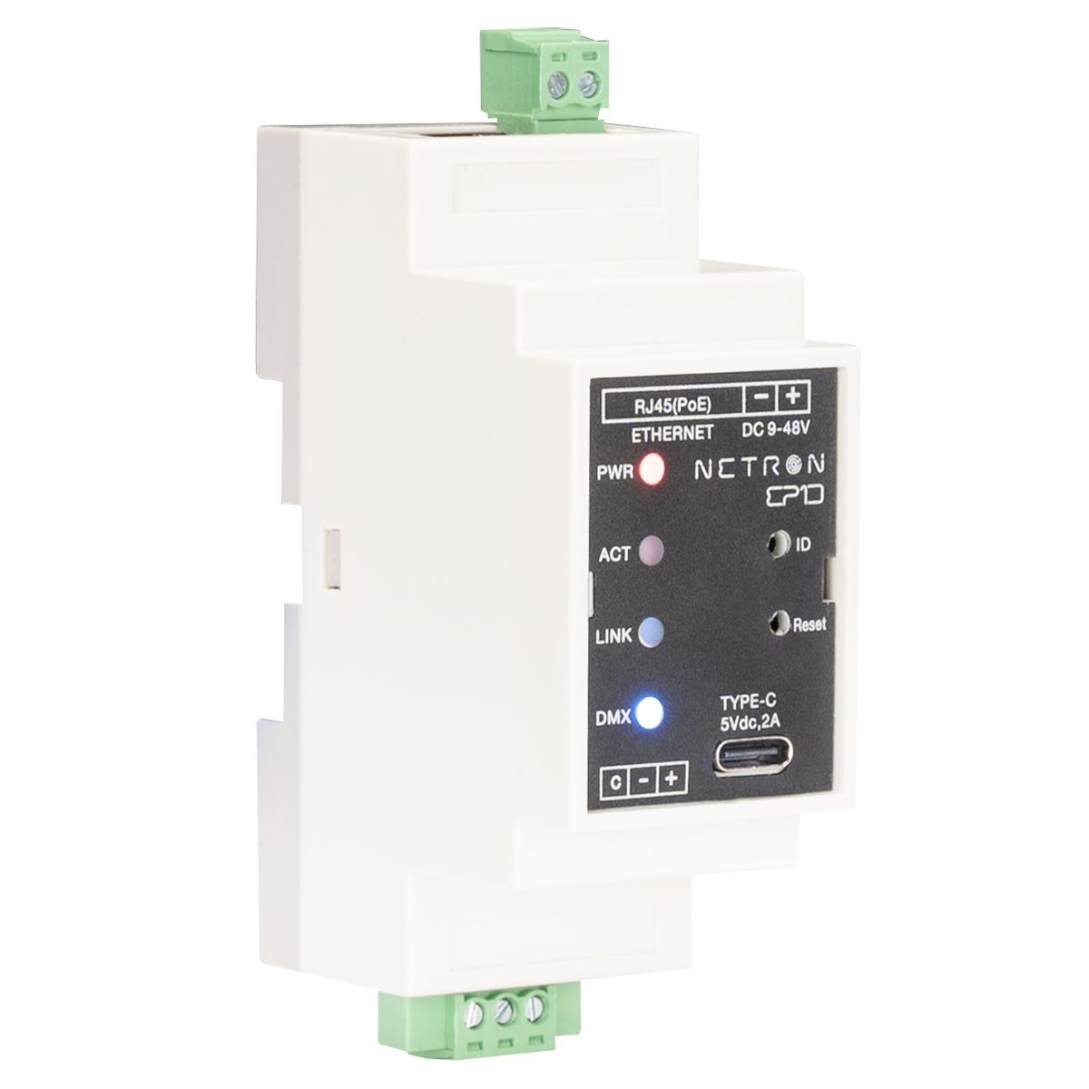 ממשק Ethernet to DMX (ART-NET) דגם Netron EP1 להתקנות על פס דין שליטה דרך ממשק WEB