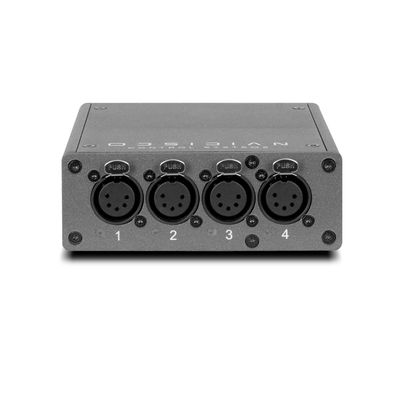מפצל DMX/RDM מקצועי של Obsidian להפצת אותות DMX במערכות תאורה.