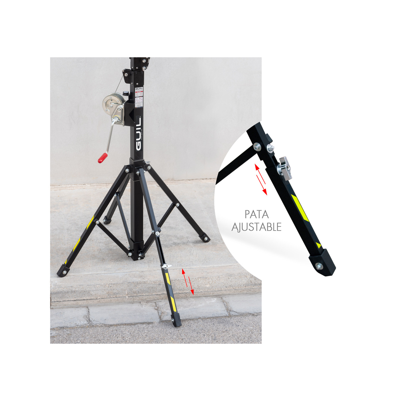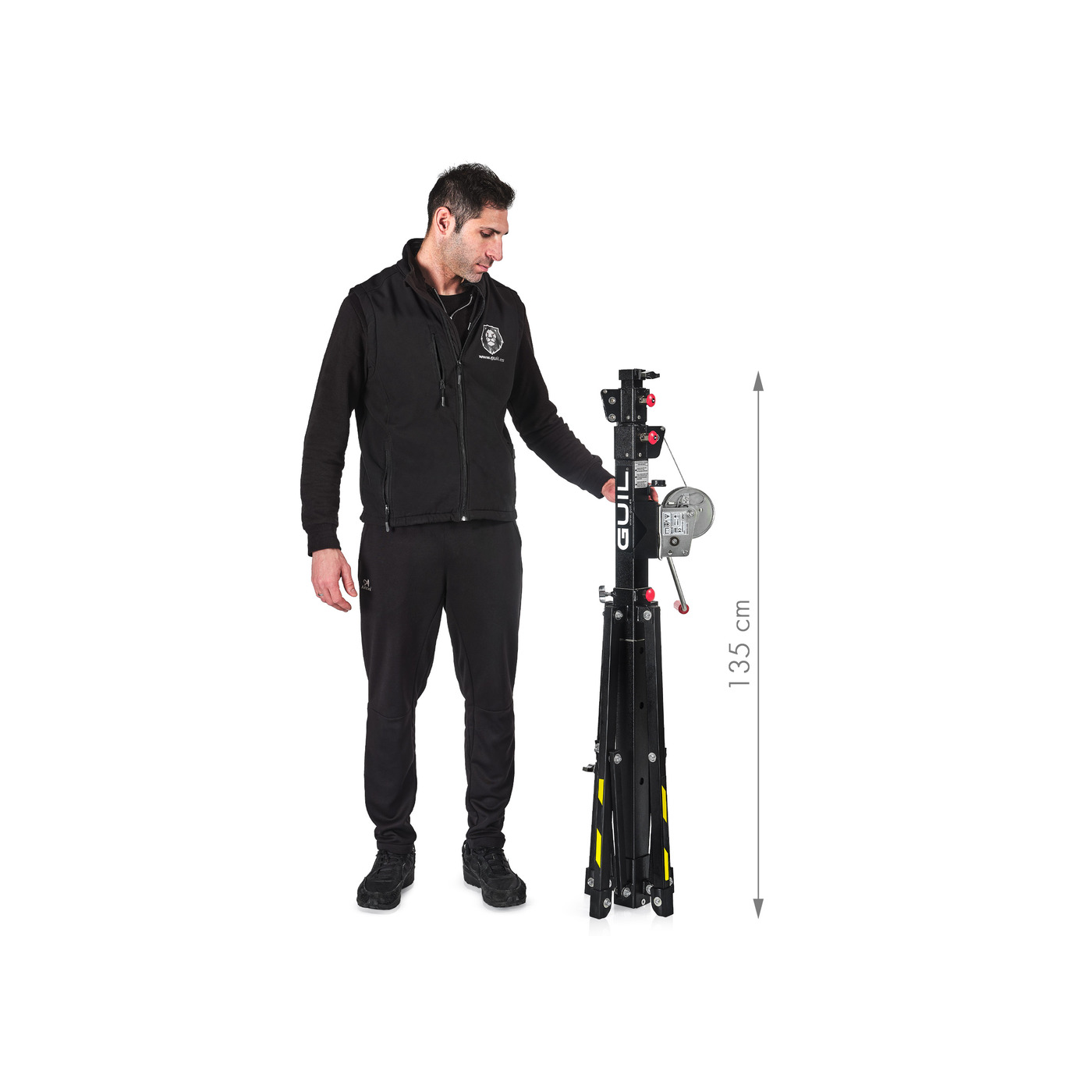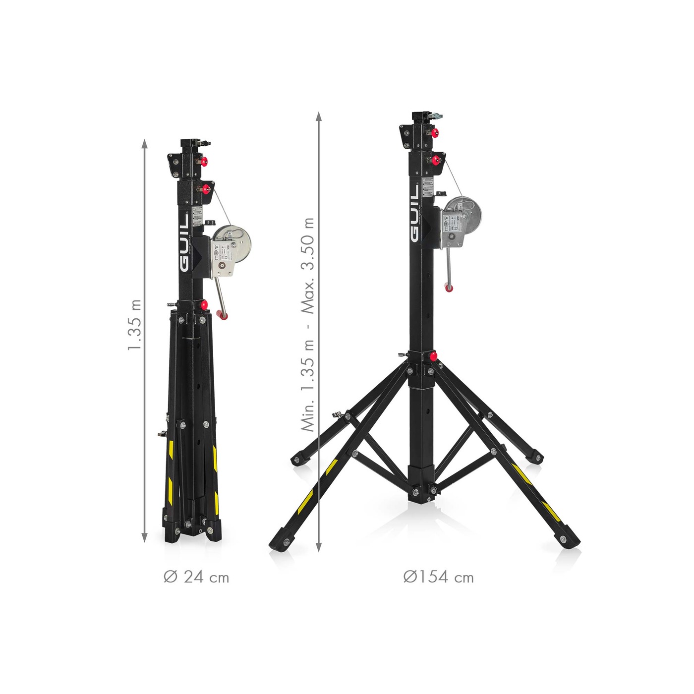 סטנד תאורה מקצועי של GUIL להרמת מערכות תאורה עד 125 ק״ג לגובה של כ-3.5 מ׳.