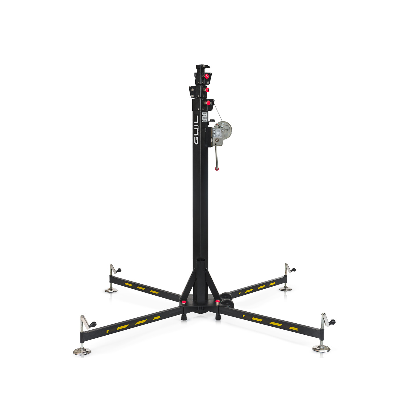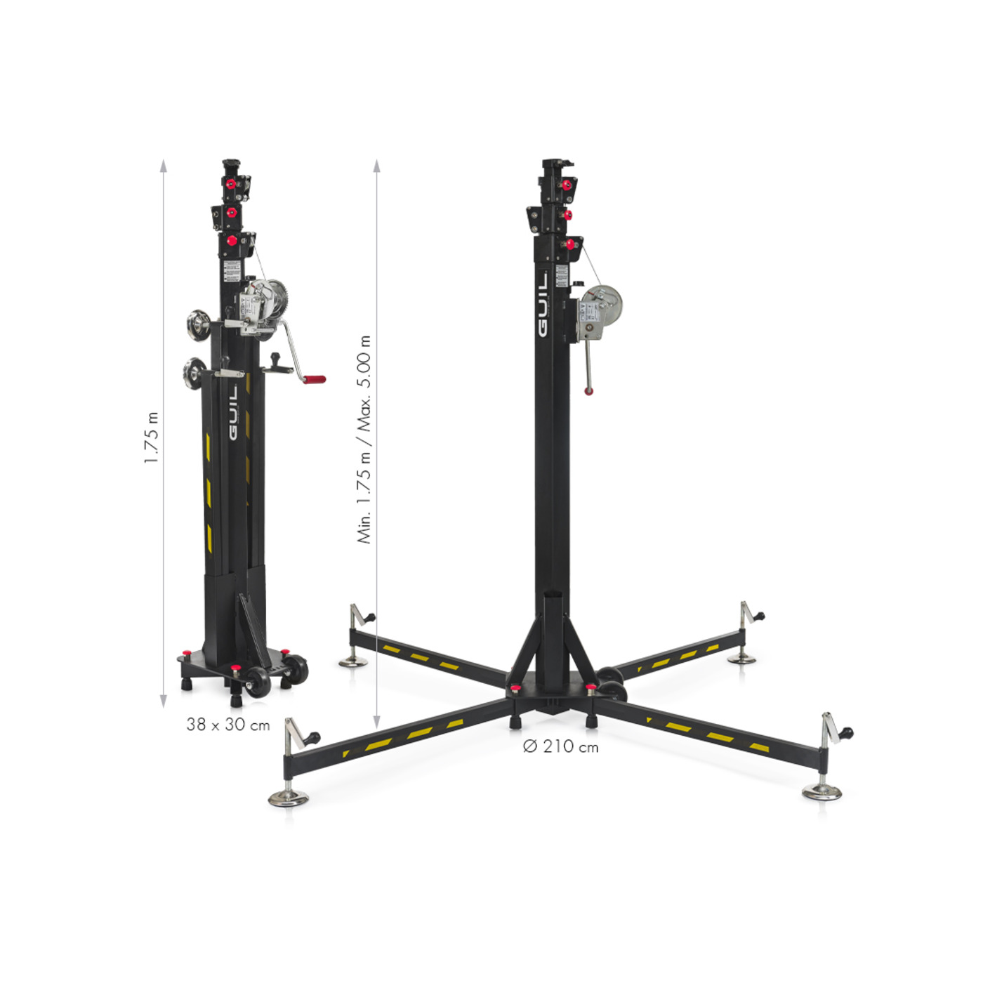 סטנד תאורה מקצועי של GUIL להרמת ציוד תאורה עד 125 ק״ג לגובה של כ-5 מ׳.