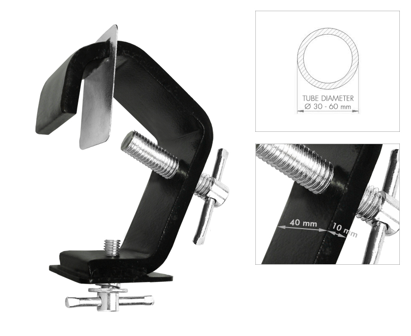 קלמרה קליבה מקצועי של GUIL לתליית ציוד תאורה על טראסים.