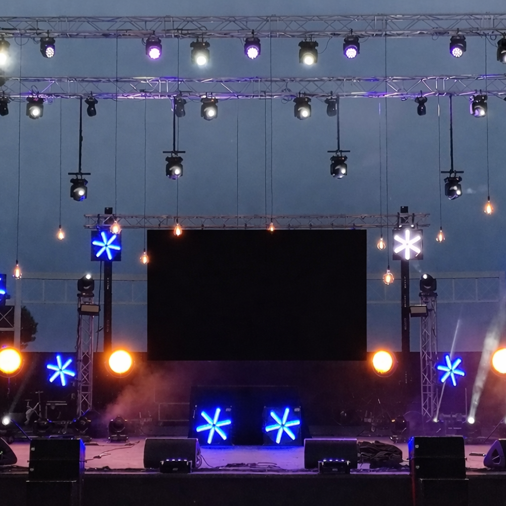 מתקן T טלסקופי של חברת GUIL לתליית ציוד במה על טראסים.