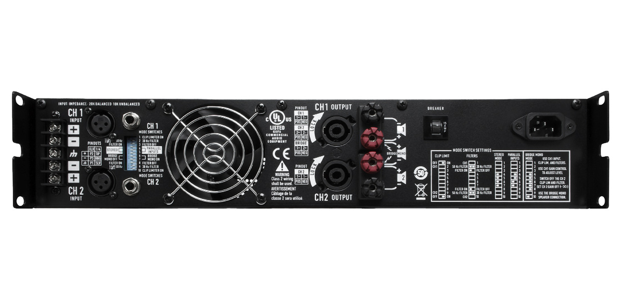 | Indicators | Power, Signal A, Signal B, Standby, Limit, Mic (24 dB and 36 dB settings) | |||||||||||||||