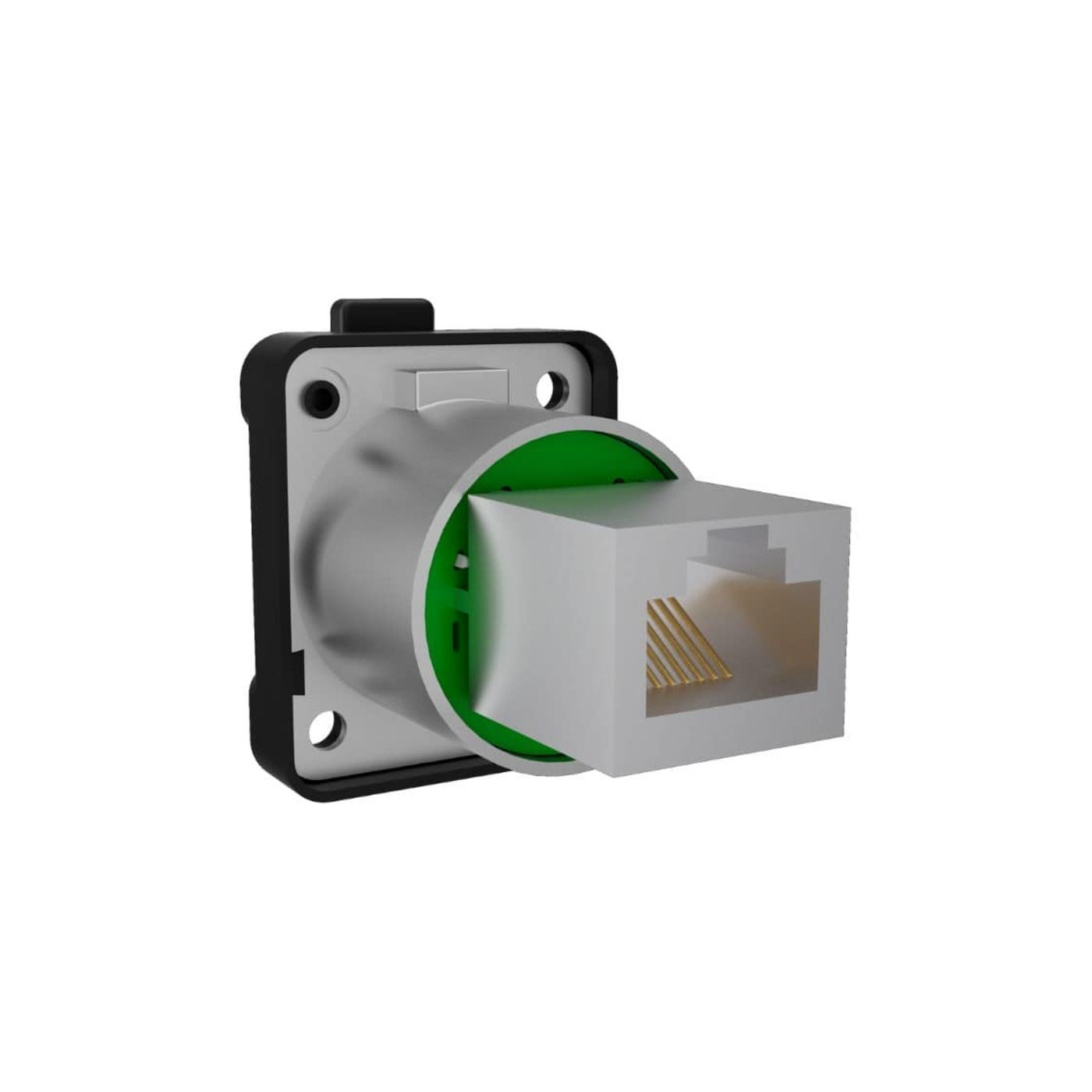 מחבר רשת RJ45/ETHERCON לפאנל/שאסי בצבע שחור מדגם SE8FDYH-60-B-NS – צד אחורי ישר