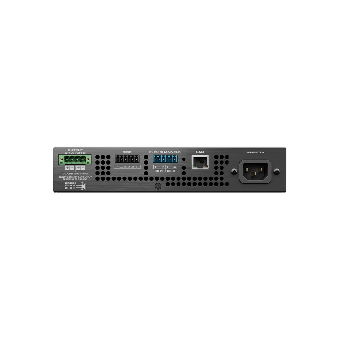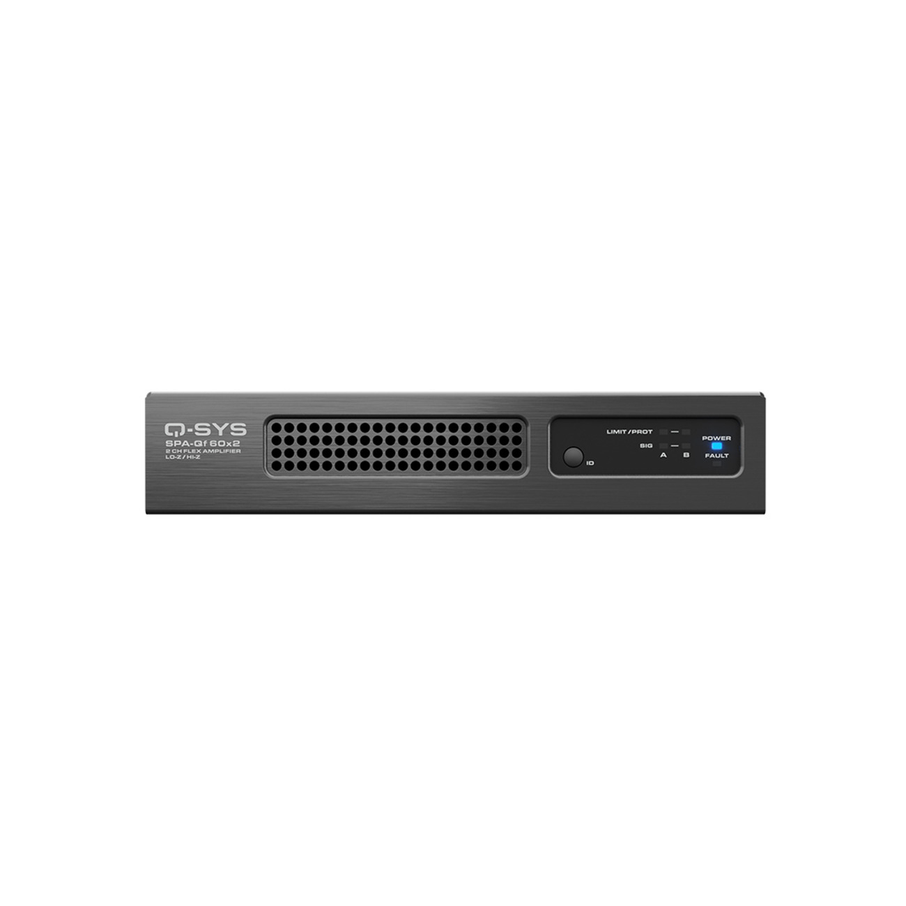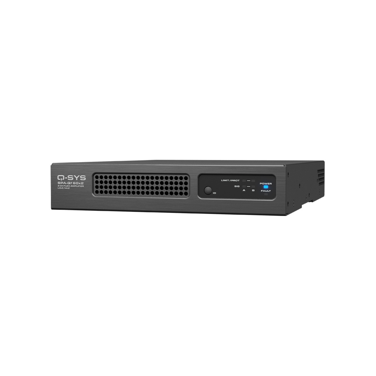 מגבר כוח רשת משולב Q-SYS בעל שני ערוצים בהספק 60W לערוץ בגודל 1/2U עם כניסות מיקרופון/קו