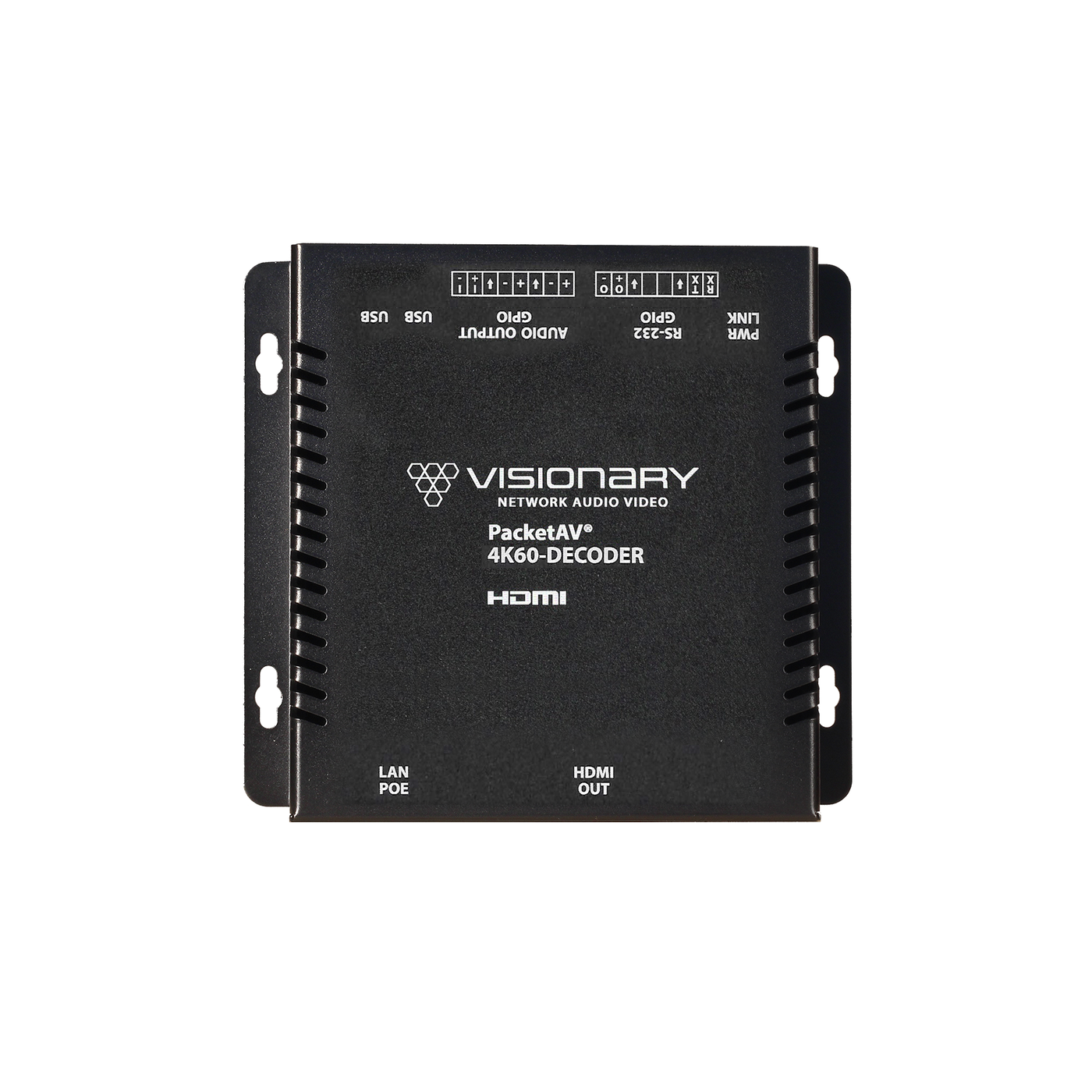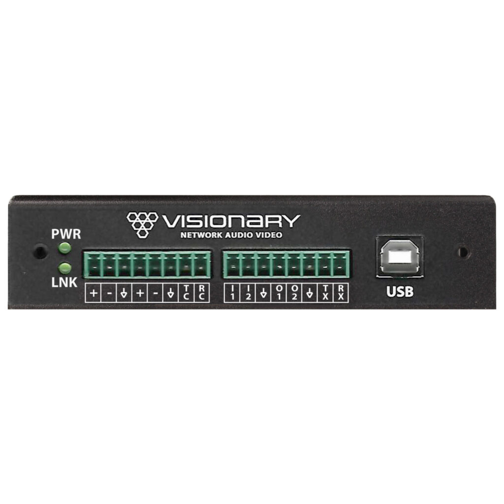מפענח AV over IP מסדרת 5 של Visionary לקבלת וידאו 4K60 4:4:4 ואודיו ברשת במערכות AV מקצועיות.