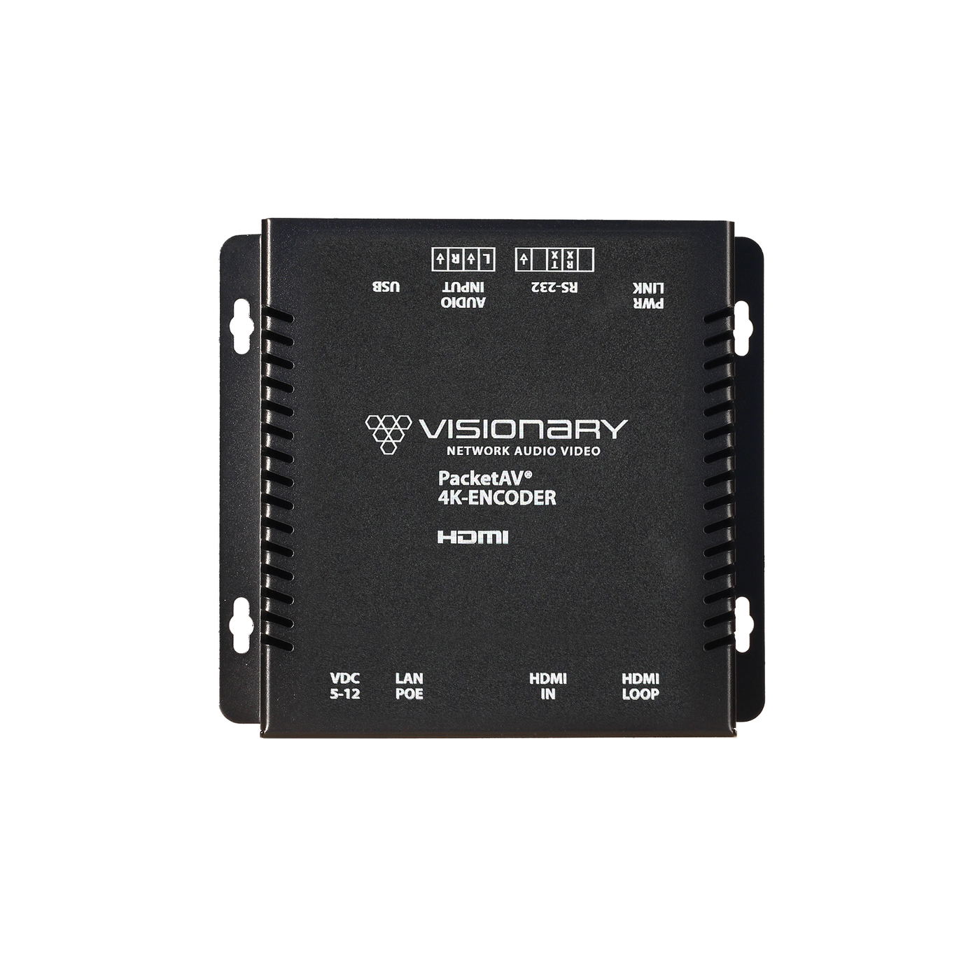 מקודד AV over IP מסדרת 4 של Visionary להעברת וידאו 4K UHD, אודיו ושליטה על גבי רשת Gigabit Ethernet במערכות AV מקצועיות.