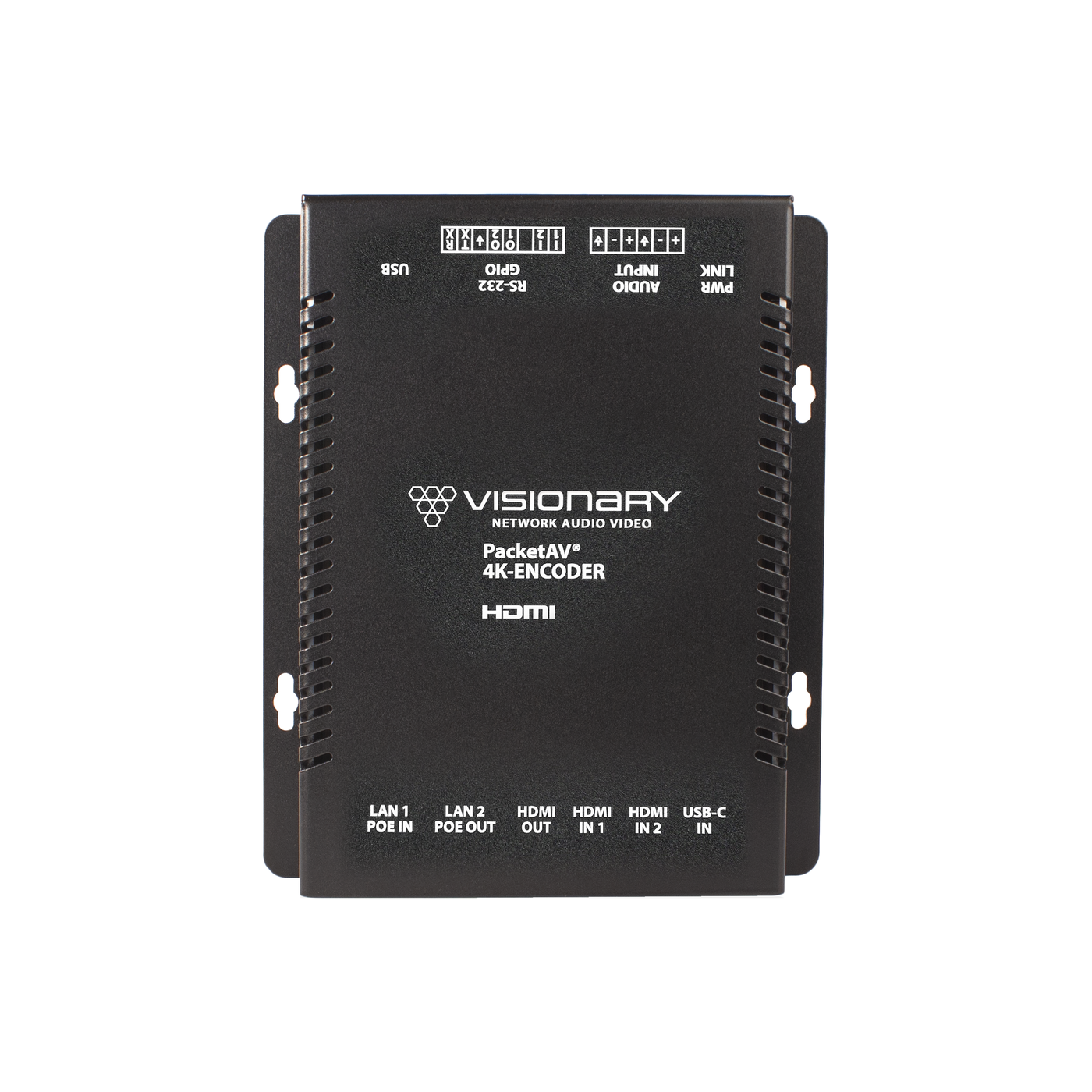 מקודד AV over IP מסדרת 4 של Visionary להעברת וידאו 4K UHD ואודיו ברשת עם אפשרות שילוב Dante/AES67 במערכות מקצועיות.